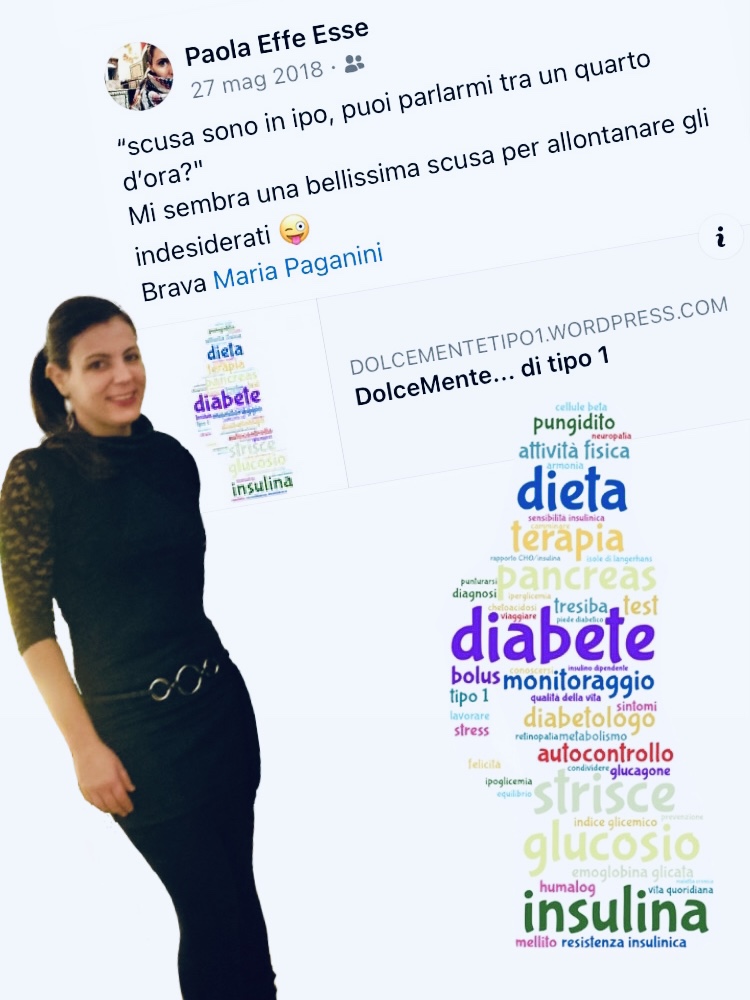 Cerco quella vecchia word cloud per confrontare idee vecchie e nuove, e mi accorgo che la silhouette tratteggiata qualche anno fa è la stessa della foto scelta nell’ultimo articolo scritto sul blog, quella che al momento rappresenta bene come mi sento, con un buon equilibrio glicemico. E allora sorrido e respiro profondo divertita perché la vita sa davvero essere ironica con me. Anche se ho il diabete.